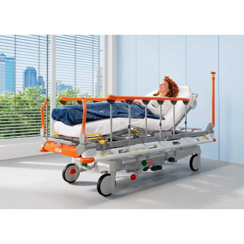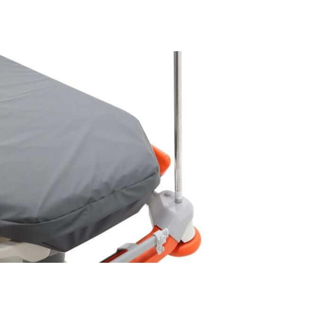 Graças ao inovador IV&Drive, a maca pode ser empurrada usando os polos IV sem o risco de quebra.