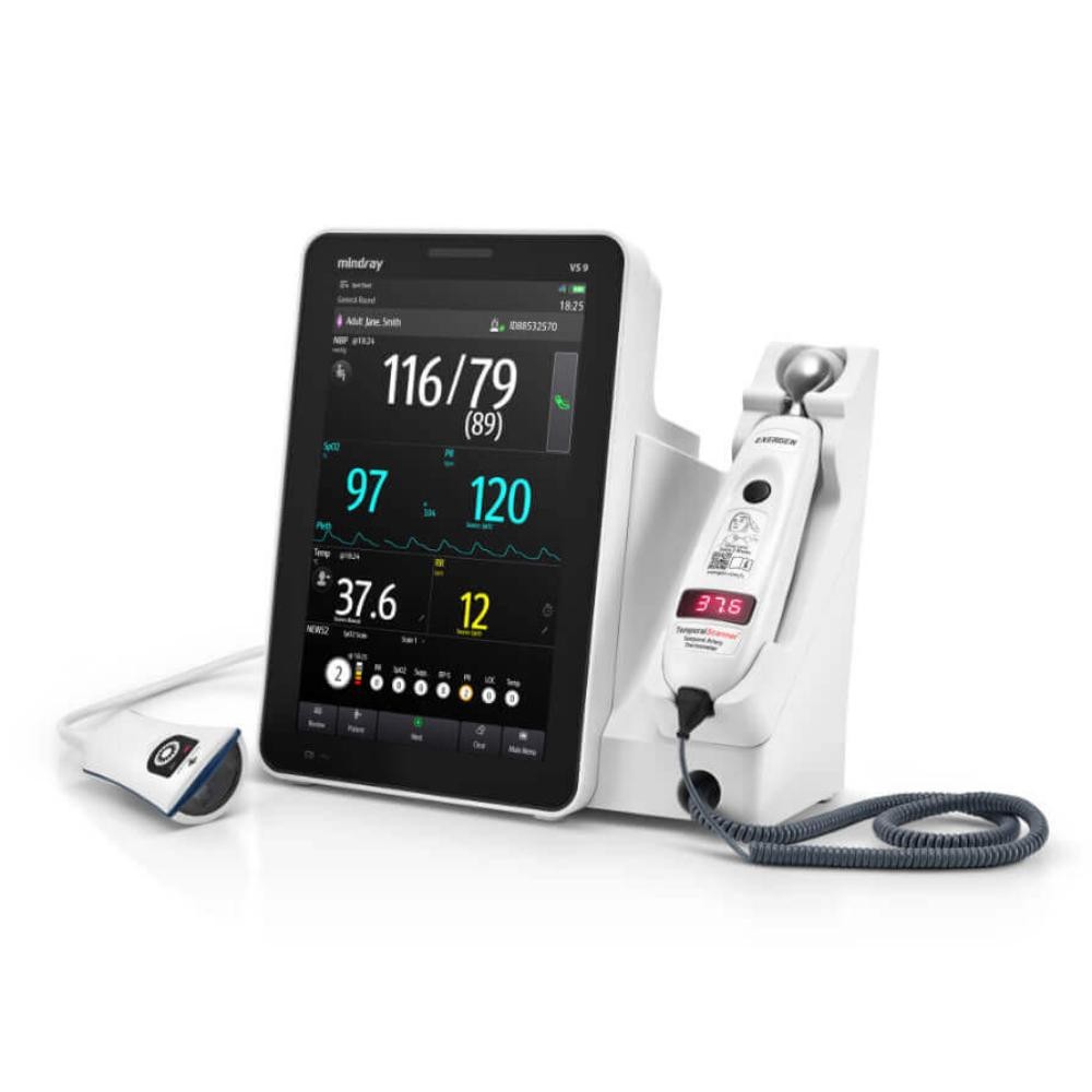 O VS 9 fornece medições precisas de sinais vitais em velocidades rápidas, maximizando o conforto do paciente e a eficiência clínica.