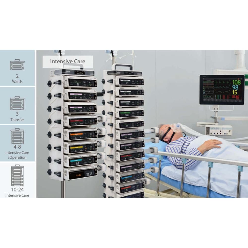 A solução de acoplamento flexível que varia de 2 a 24 slots oferece uma solução abrangente para uma ampla variedade de cenários de infusão.