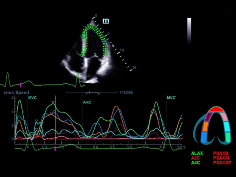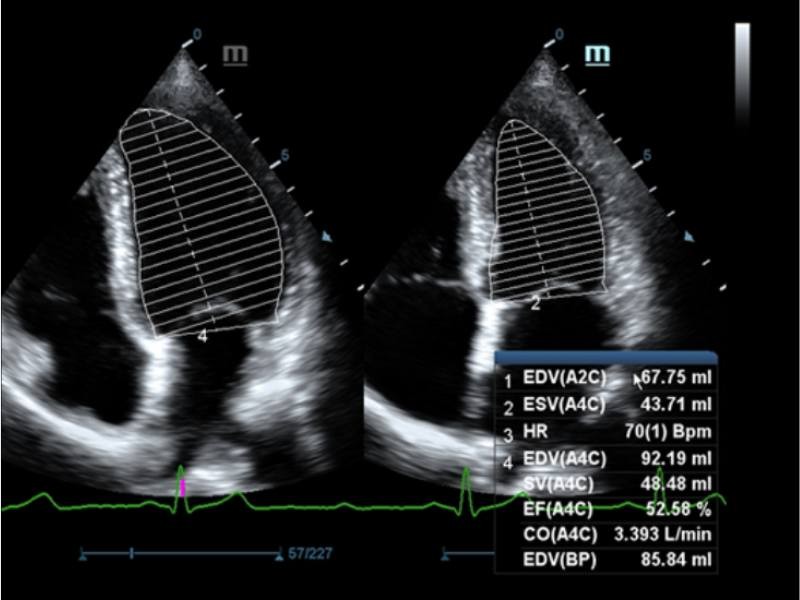 A Auto EF é uma forma inteligente de analisar clipes de eco 2D para reconhecimento automático de quadros de diástole/sístole e os resultados de uma série de medidas para avaliar a função do ventrículo esquerdo para maior produtividade, tais como EDV/ESV/EF.