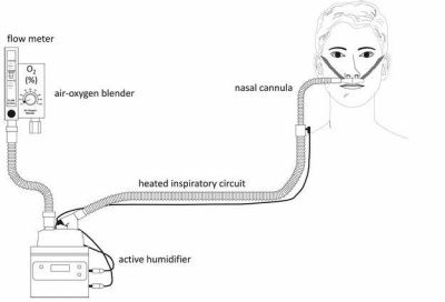 Schwabbauer, N., Berg, B., Blumenstock, G., Haap, M., Hetzel, J., & Riessen, R .(2014). Nasal high-flow oxygen therapy in patients with hypoxic respiratory failure: effect on functional and subjective respiratory parameters compared to conventional oxygen therapy and non-invasive ventilation (NIV). BMC Anesthesiol. 2014 Aug 7;14:66.